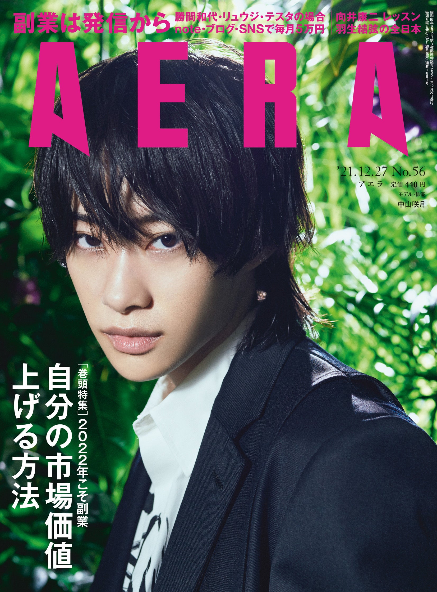 12月20日月曜日発売のAERA12月27日号は、巻頭で「2022年こそ副業 自分の市場価値を上げた3人の発見」を特集。経済評論家の勝間和代さん、料理研究家のリュウジさん、デイトレーダーのテスタさんの3人に、「社外で通用する自分」につながる発見についてインタビューしました。「発信」することで月5万円を稼ぐノウハウや、地方に「能力」を還元する「ふるさと副業」なども取材しています。好評の月2回連載「向井康二が学ぶ 白熱カメラレッスン」は、タワーレコードの「NO MUSIC, NO LIFE.」の撮影で知られる平間至さんを新たな先生に迎えて、撮影対決に挑みます。そして表紙には、トランスジェンダーを公表した、モデルで俳優の中山咲月さんが登場。インタビューでは、公表までの葛藤やその後の思いを率直に語っています。