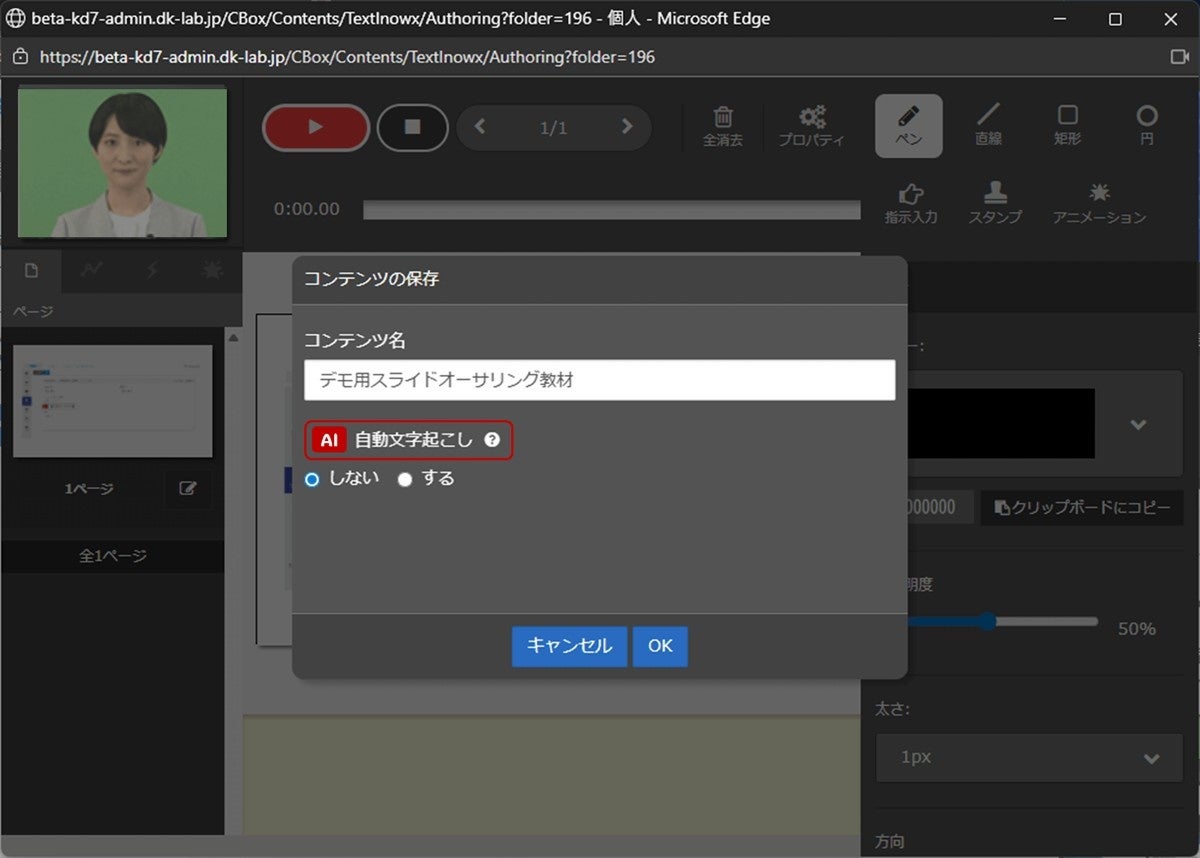 ☑ スライドオーサリング型テキストの自動文字起こし機能