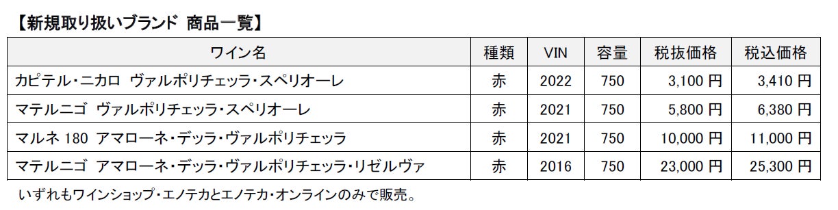 エノテカ株式会社(本社:東京都港区、社長:堀 慎二)はイタリア・ヴェネト州のヴァルポリチェッラで、アマローネをはじめとした高品質なワインを造る生産者「テデスキ」の日本正規代理店として、5月1日から4品目をワインショップ・エノテカおよびエノテカ・オンラインで販売開始します。