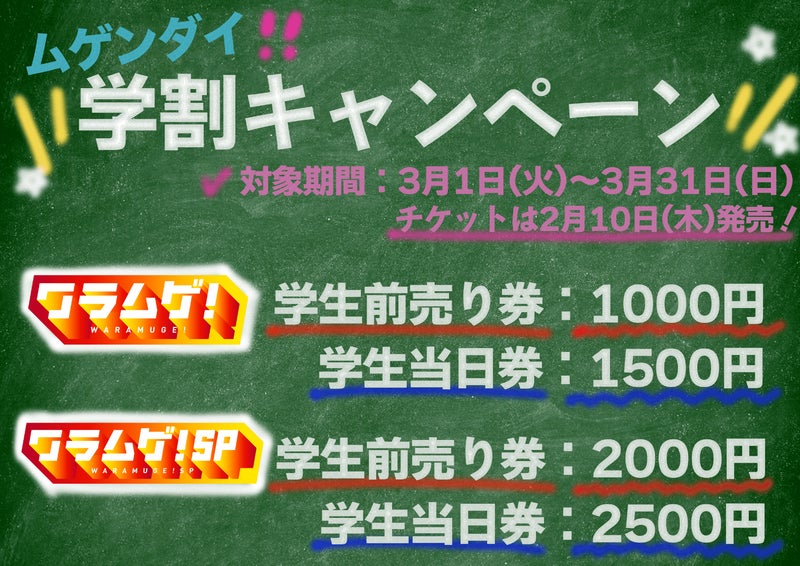 「ワラムゲ!」 前売 1500円→1000円、当日 2000円→1500円
