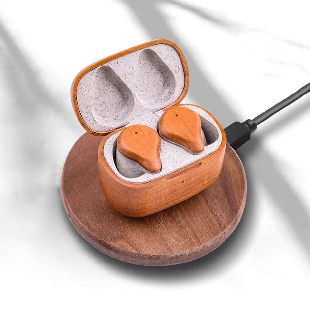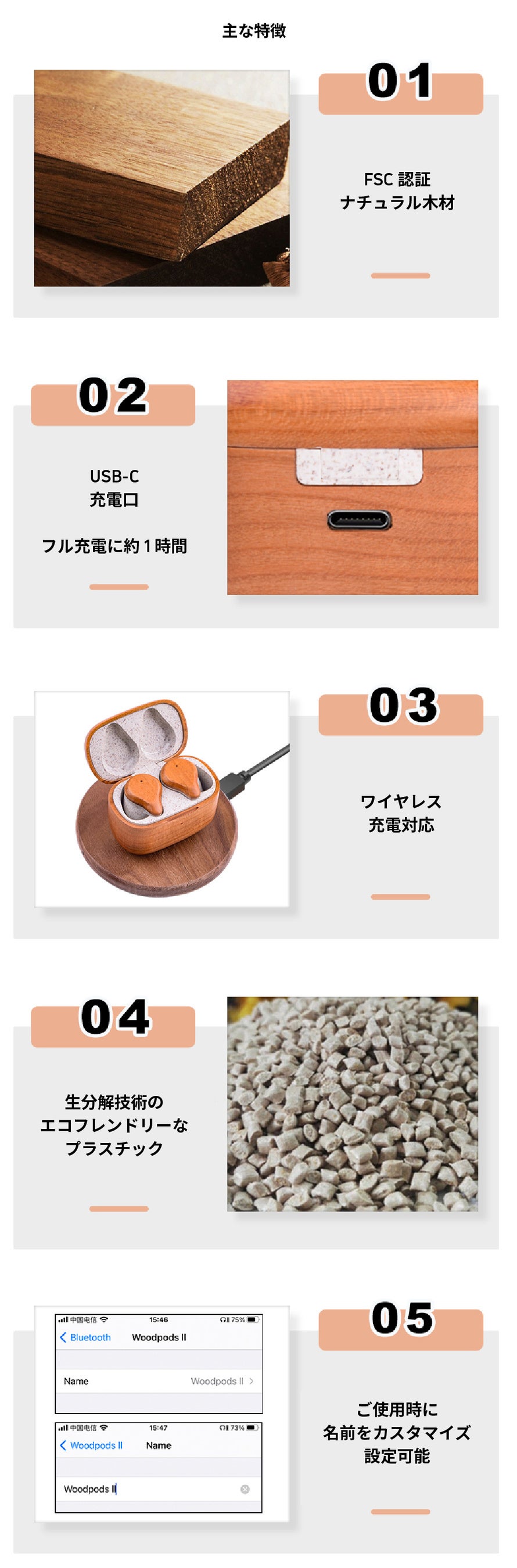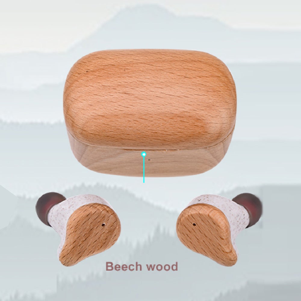 ケース表面と、イヤホン本体にビーチウッド素材を使い、手に取った時に木材のぬくもりを感じられます。