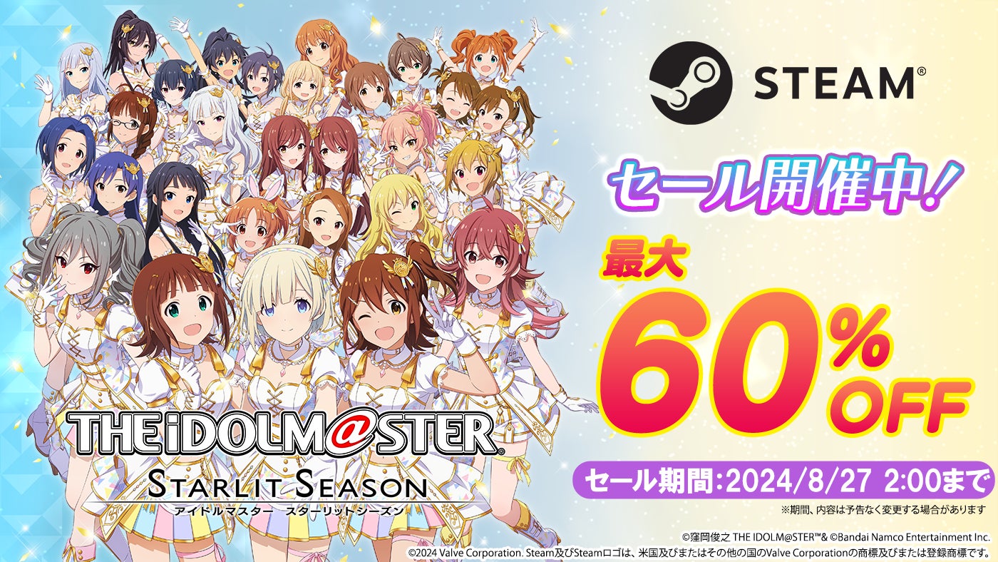 株式会社バンダイナムコエンターテインメントは、Steam版「アイドルマスター スターリットシーズン」と各種ダウンロードコンテンツのセールを開始したことをお知らせいたします。