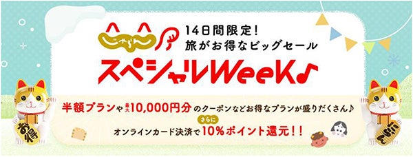 ■「じゃらんスペシャルウィーク」旅をお得に「半額プランも!」