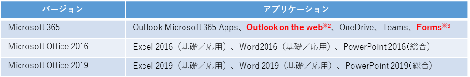 FormsおよびOutlook on the web をはじめ、Microsoft 365の主要アプリケーションの機能や操作方法を習得できるテキスト提供することで、お客さま企業におけるMicrosoft 365の利活用を促進します。
