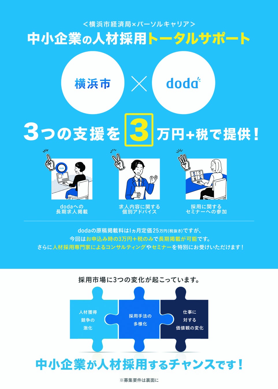 【先着順で申込み受付中】【横浜市内中小企業限定】登録者数840 万⼈の日本最大級の転職サイト「doda」への求人掲載企業の募集開始~手厚いフォロー付き~
