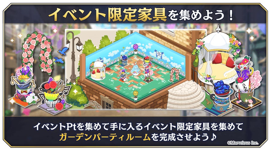 今回のイベントではガーデンパーティルームの家具がイベントPt報酬で入手可能!