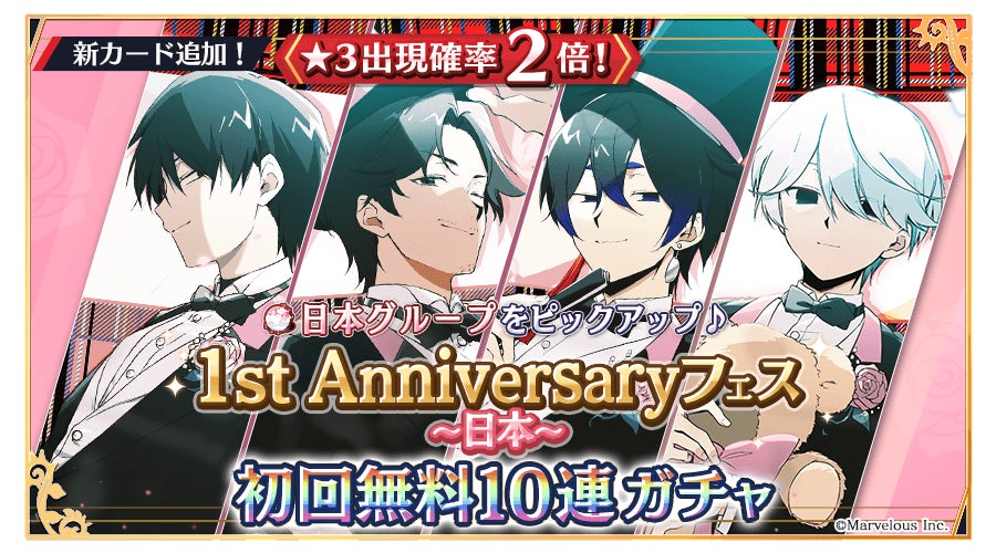 ※「1st Anniversaryフェス~日本~」と「★3確定有償限定1st Anniversaryフェス~日本~」のガチャでピックアップ対象となります。