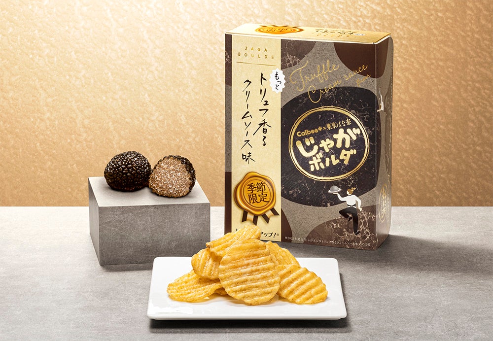 カルビーの一歩進んだ“おいしい”“楽しい”を提案するアンテナショップ「カルビープラス」と「東京ばな奈」がコラボレーション!共同開発の進化系ポテトチップス「Calbee+×東京ばな奈 じゃがボルダ」から、秋冬限定『もっとトリュフ香るクリームソース味』が新登場いたします。