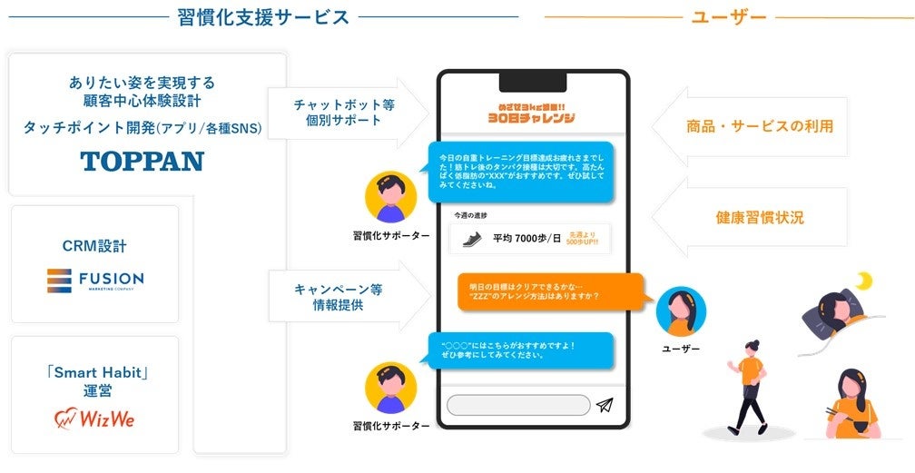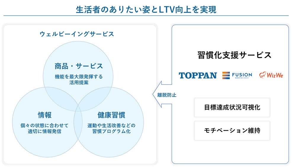 TOPPAN、フュージョン、WizWe企業の生活者向けウェルビーイング事業の習慣化支援サービスを提供開始