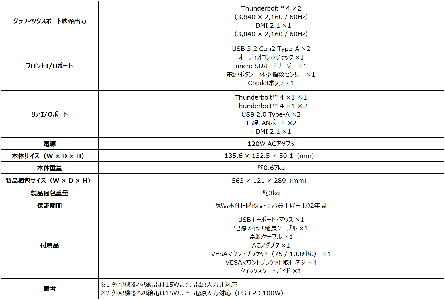・Thunderbolt™ 4 ×2、HDMI 2.1 ×1を使用し、最大3画面の映像出力に対応でき、