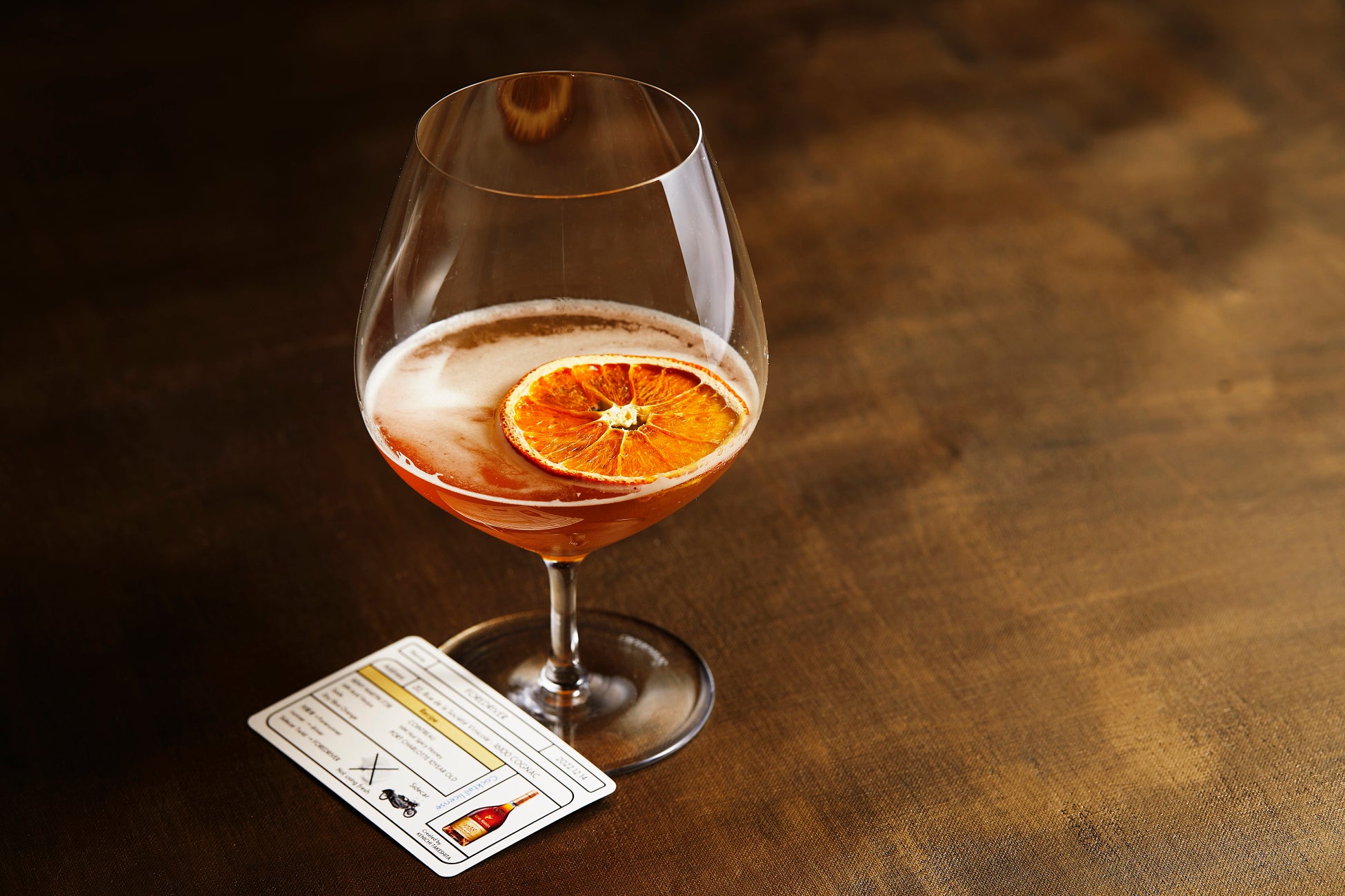 材料:Rémy Martin 1738 アコード・ロワイヤル、コアントロー、自家製アシッドヴェルジュ、自家製ホットスパイシーハニー、ソーダ、ポートシャーロット、ドライスライスオレンジ