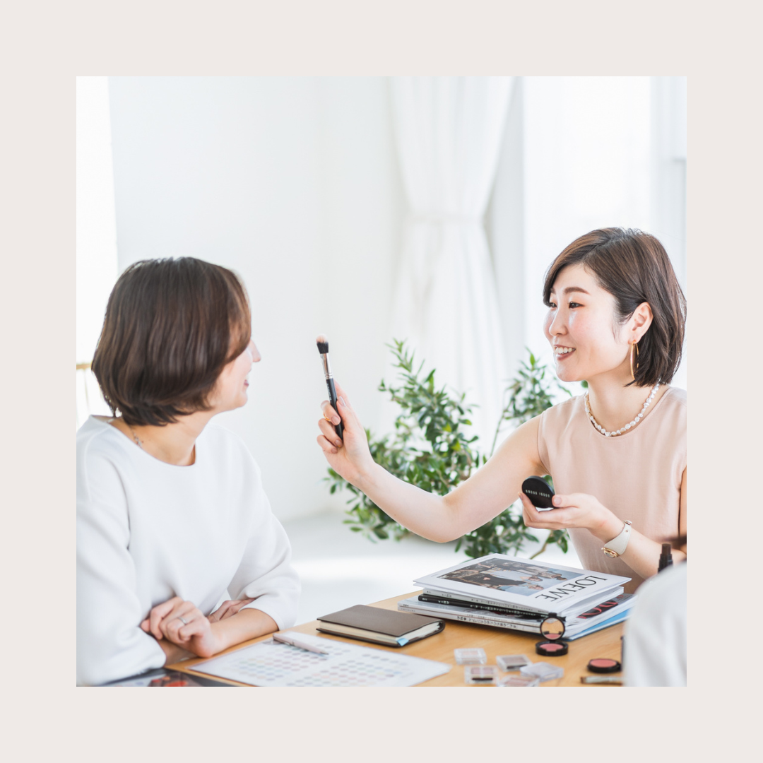 顔タイプ診断による印象分析をもとに、魅力を活かしたポイントメイクのアドバイスをします。