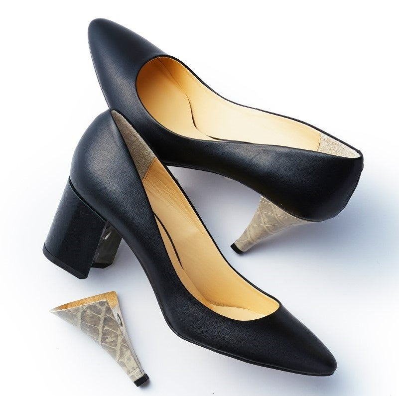 ワンタッチでヒールを着せ替えが可能なパンプス。約20種のヒールを取り揃え。