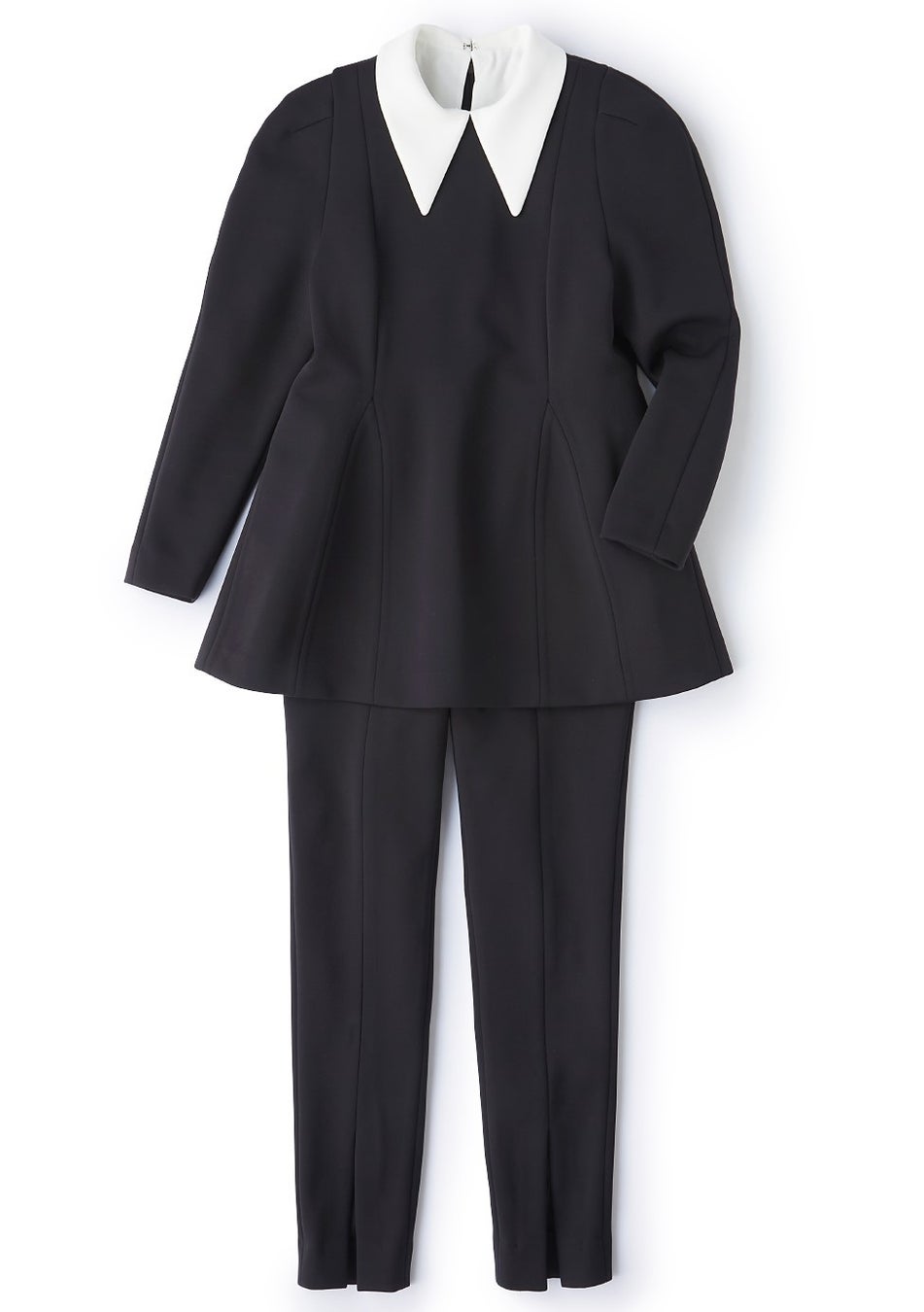 肩からふんわりと立ち上がるパフスリーブや、腰から広がる3Dペプラムなど、「大人が着られる甘さ」にこだわったコラボプルオーバー。清楚な印象を足せるつけ衿付きのうえ、ストレッチ性のあるボンディング素材で、身体のラインが出にくいのもおすすめです。