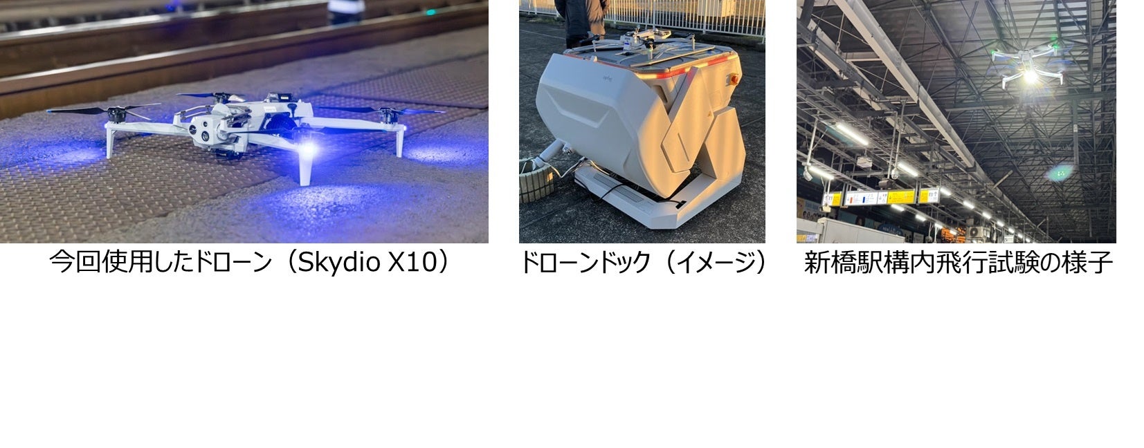2026年1月下旬夜にJR山手線新橋駅近辺でドローン飛行試験を行い、無線通信やLTE通信環境下で通信不良もなく安定した飛行や夜間においても鮮明な映像が取得できることが確認できました。異常時の点検を目的に山手線で遠隔操作によるドローン飛行試験を行ったのは初めての取り組みです。なお、本検証はCalTa株式会社との共同で実施しています。