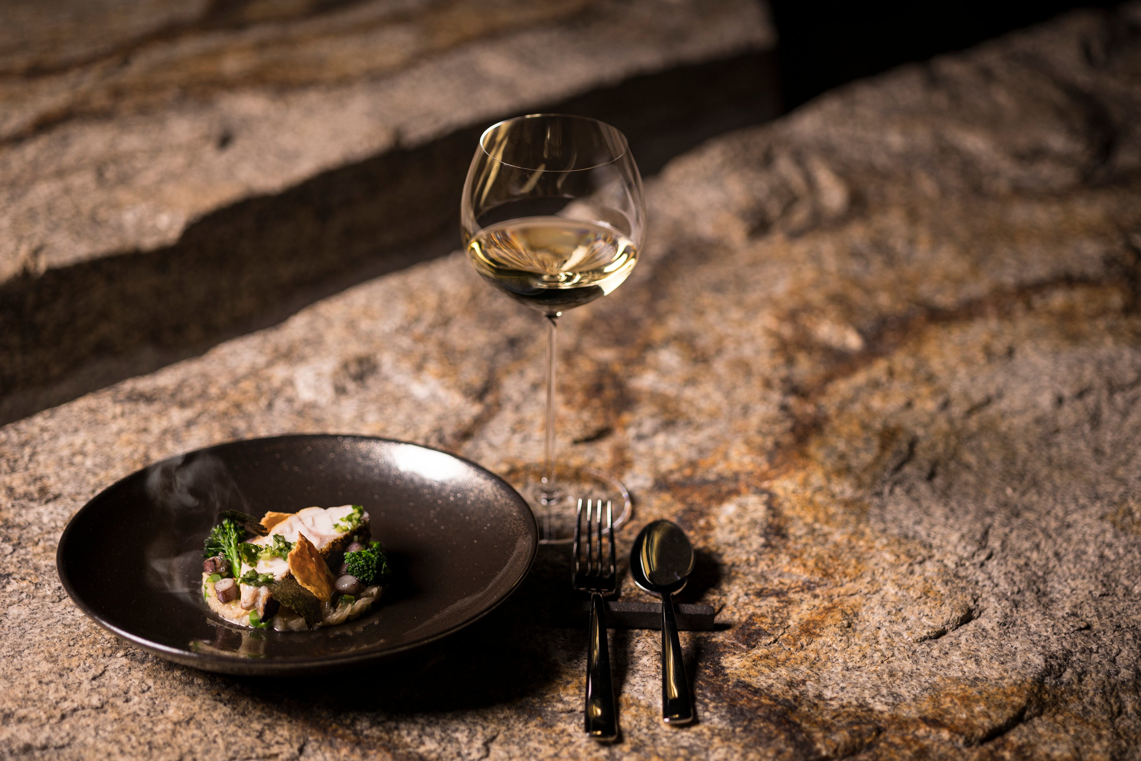 日本の伝統様式を重んじながら、現代に合わせて進化し続ける日本旅館「星のや東京」。その地下1階にあるダイニングでは、地層をイメージした左官仕上げの壁と大きな御影石が迎え入れます。エントランスを抜けると、6室の畳敷きの個室、4つのテーブル席があります。和の静けさが漂う落ち着いた日本旅館の空間で、滞在着のまま肩肘張らずに食事が楽しめます。