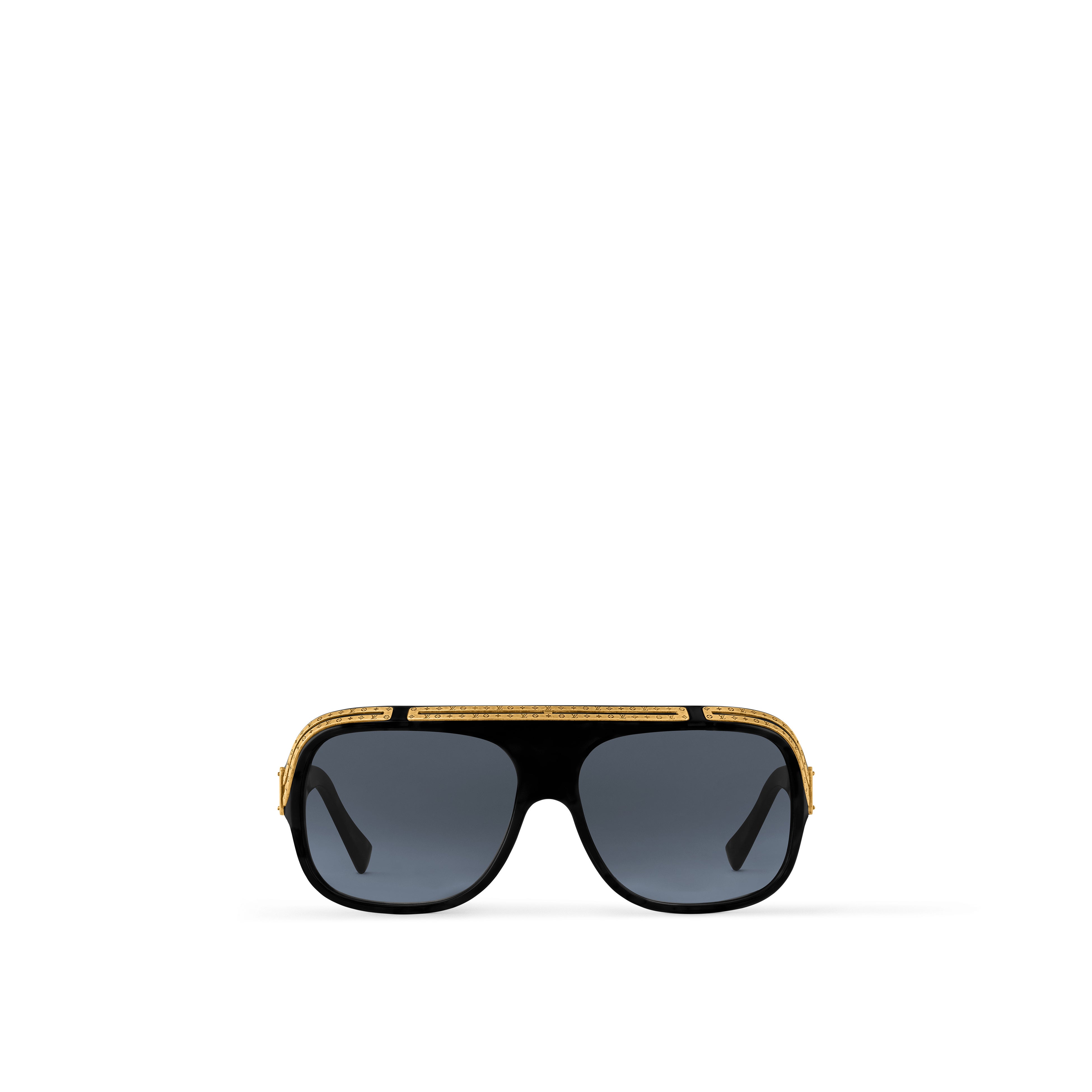アセテートのインジェクションフレームをヴィンテージ調のパイロットシェイプに仕上げ、エイジング加工を施しモノグラムの刻印を配したゴールドカラーのダブルバーをブリッジからテンプルにかけてあしらいました。美しく細工されたメタルとエナメルのヒンジには、メゾンの伝統的なトランクを想わせるLV シグネチャーが彩りを添えます。