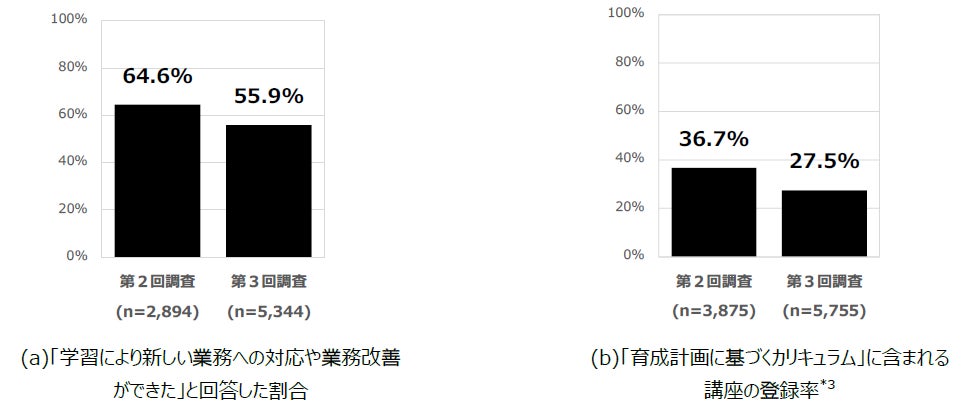 従業員の「学びの業務活用実感」が第2回調査時よりも低下した(図5a)。