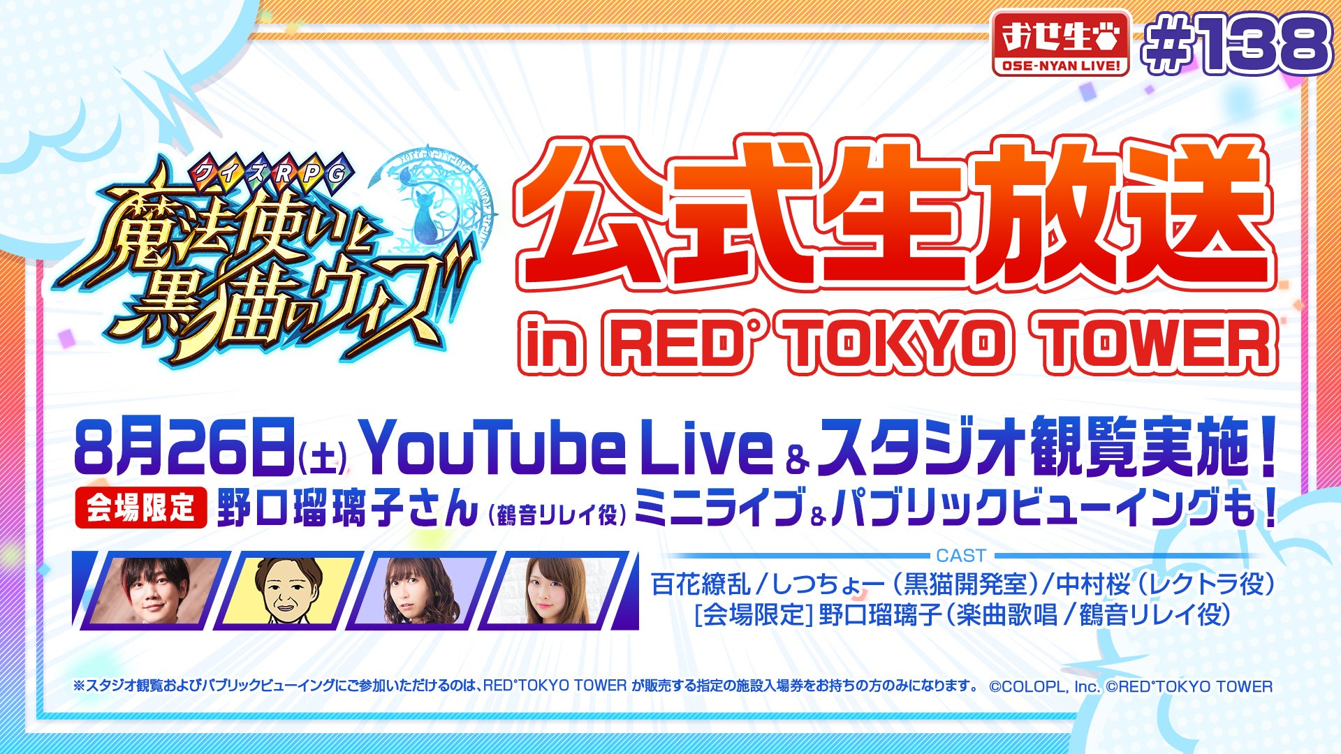 ■「『クイズRPG 魔法使いと黒猫のウィズ』公式生放送 in RED° TOKYO TOWER」配信決定!