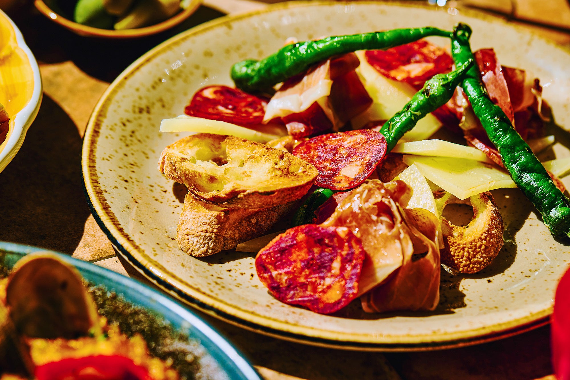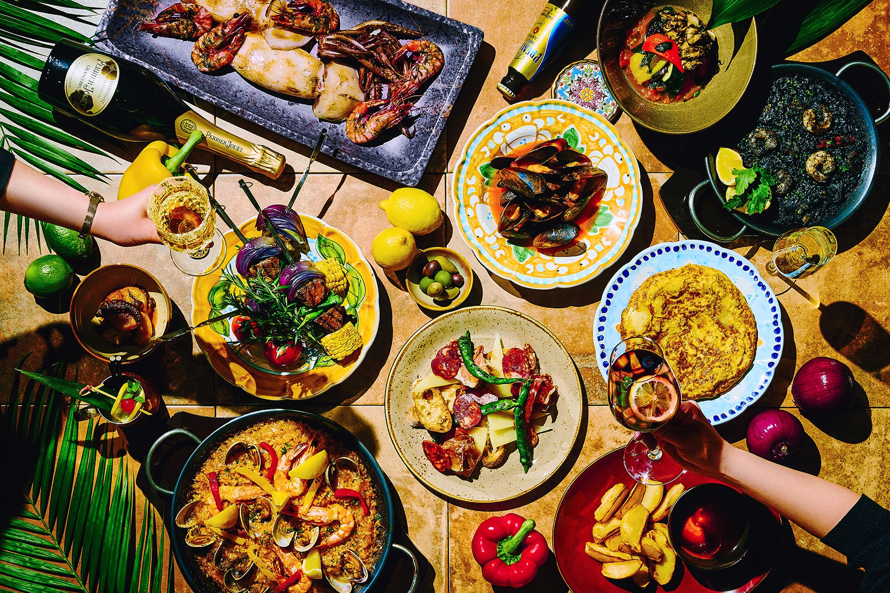 お料理はバルセロナの6つのエリアをイメージ。旧市街「シウタ・ベリャ」に立ち並ぶタパスレストランの色とりどりの華やかなタパスや、中心部「アシャンプラ」で愉しめるカタルーニャレストランのミートスキュアー(グリル肉の串焼き)、地中海に面する「サン・マルティ」のレストランやバーが提供する新鮮なシーフード料理など、まるでバルセロナの各地のバルを巡るかのように、多彩なファインスパニッシュフードをお愉しみいただけます。
