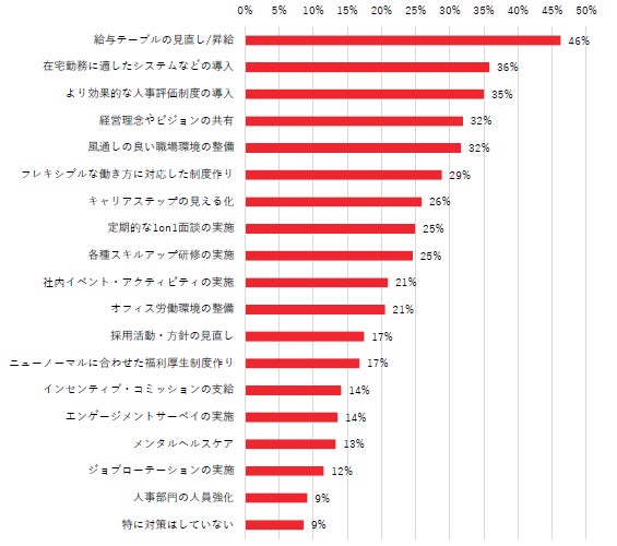 ■「大離職時代」への対策は、給与テーブルの見直し・昇給や、在宅勤務に適したシステムの導入など、企業側が従業員に寄り添う姿勢が顕著に。