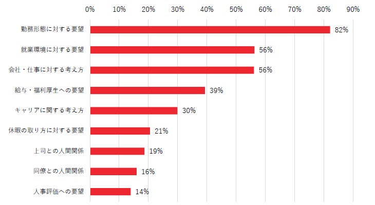 - 直近一年では、コロナ前に比べて「働き方」を理由に離職するケースが11ポイント上昇。企業はコロナ禍によって多様化する「働き方」への柔軟な対応が求められる。
