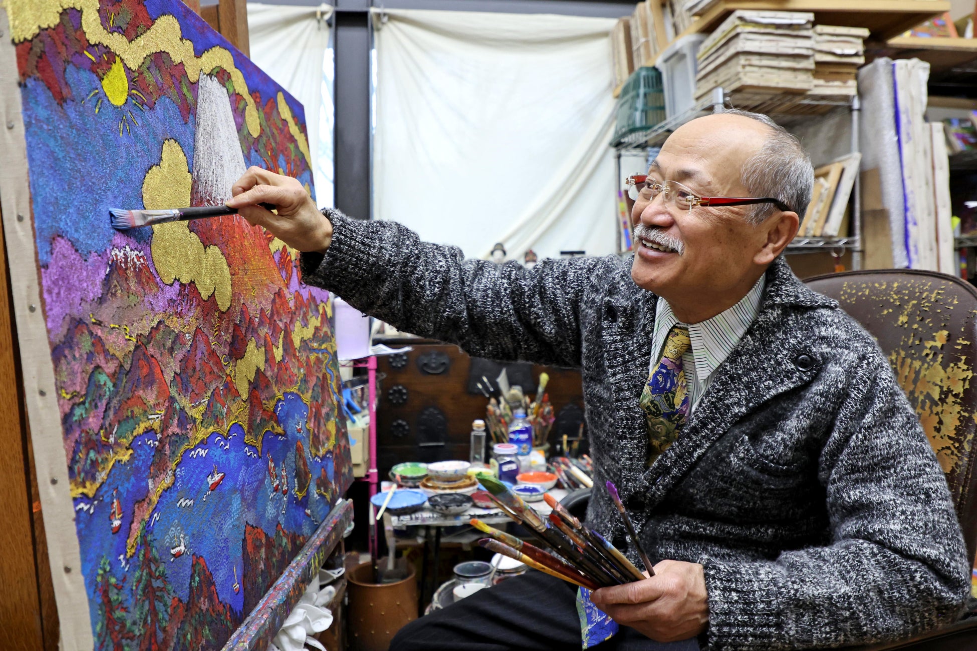 絹谷幸二(きぬたに・こうじ)1943年奈良県生まれ。東京芸大大学院修了。イタリア留学中にアフレスコを学び、1974年に安井賞を受賞。色鮮やかでエネルギッシュな画風にはファンが多く、2021年には文化勲章を受章。日本芸術院会員。