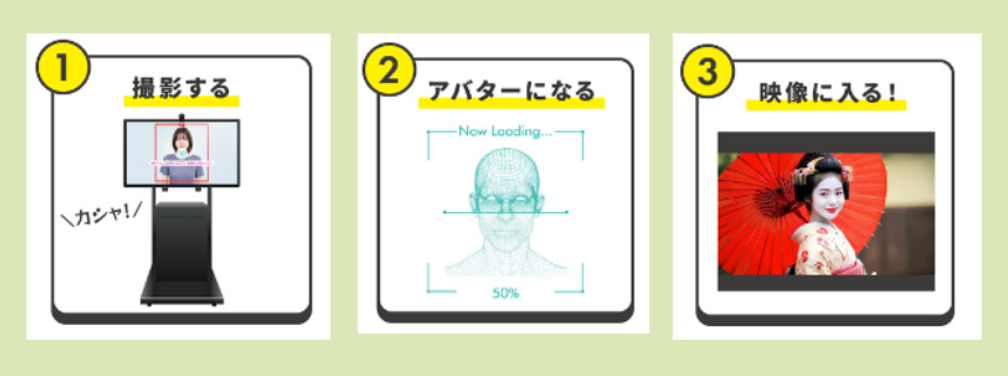 POCKET RDが開発したアバター生成デバイスです。撮影筐体の前に立つだけで誰でも簡単にアバターとして歴史上の人物に扮したり、観光施設の世界観に入り込んだりすることができるなど、普段できない体験コンテンツ動画が生成され、多彩な世界を楽しむことが可能です。また、ユーザーが体験したコンテンツをSNSに共有してもらうことで、その地域の新たな魅力の発信、口コミによるPR効果を生み出します。