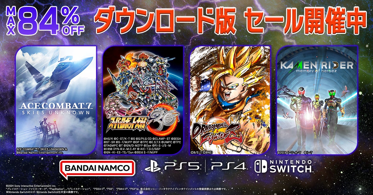 最大84%OFF!バンダイナムコエンターテインメント『ダウンロード版セール』開催中!「ACE COMBAT™7: SKIES UNKNOWN Welcome Price!!」など