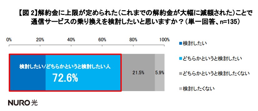 そのうち解約金の上限設定によりインターネット通信サービス(光回線)の乗り換えを検討したいと回答した人が7割以上(72.6%)いる。