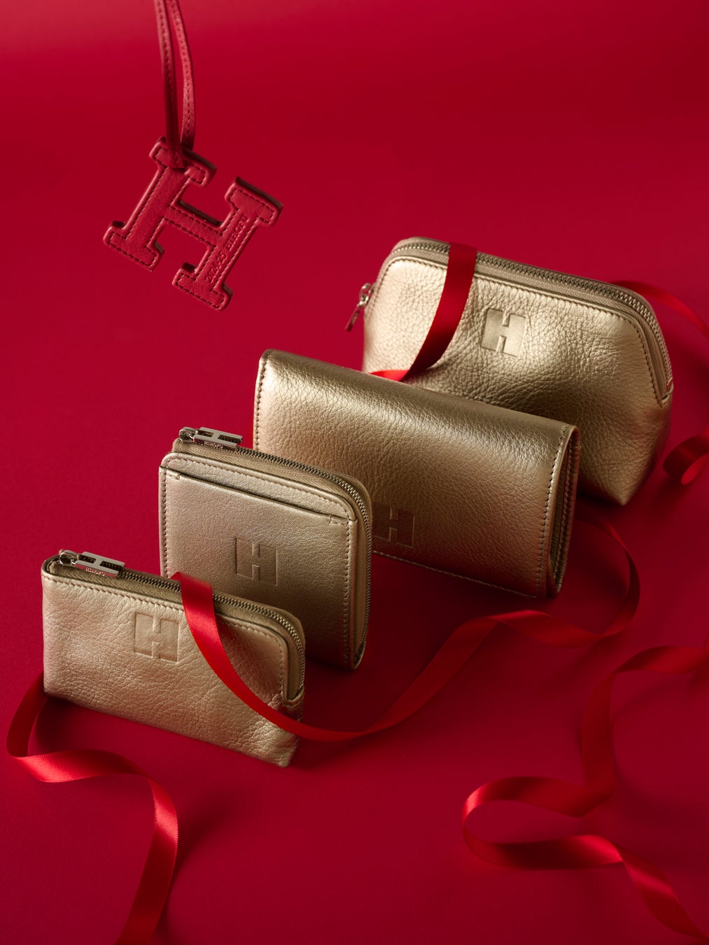 ヒロフの長年愛される定番素材“ソフトバケッタ”のメタリックなコズミックゴールドのカラーは、ギフトとしても選びやすい品のある色味です。