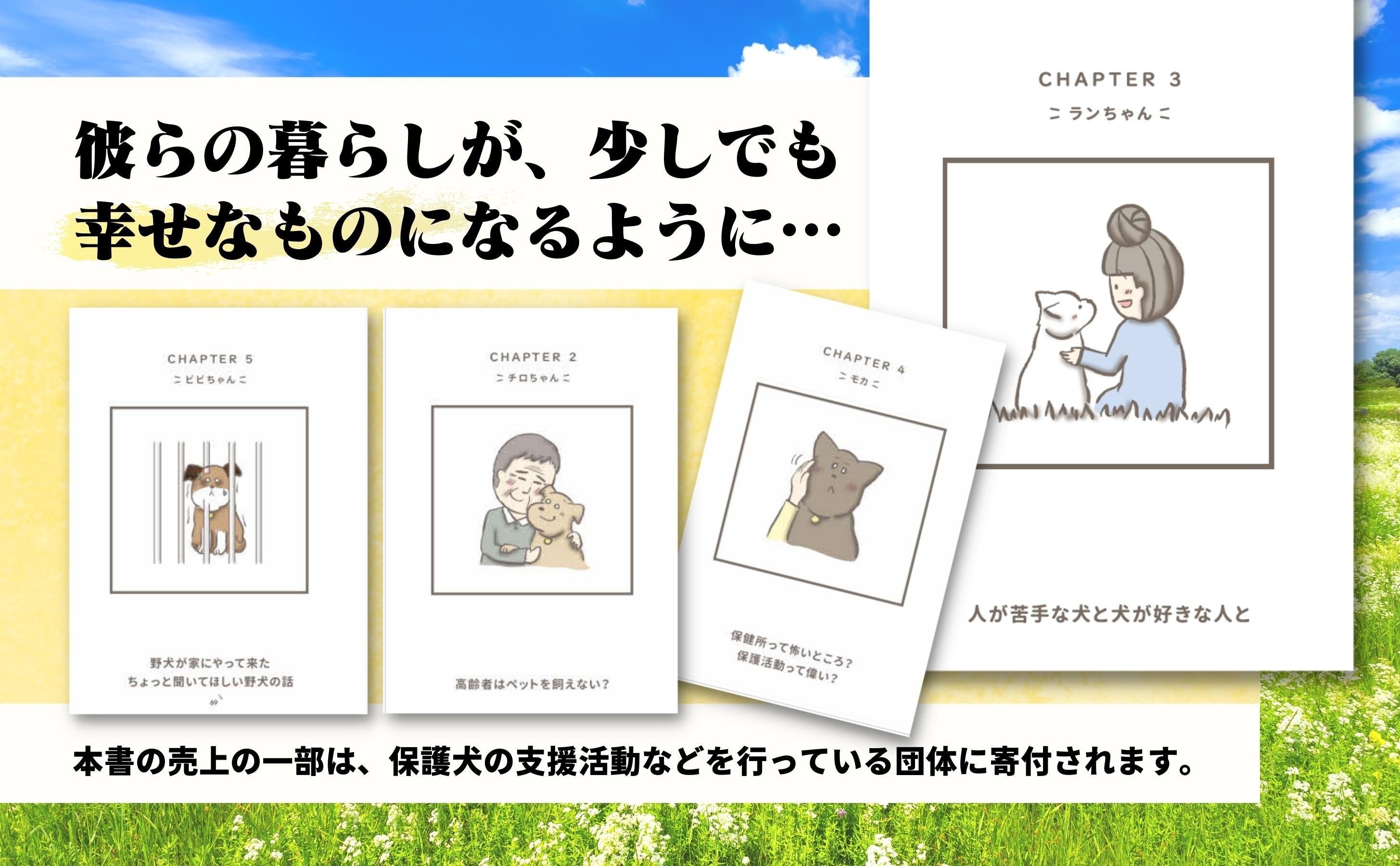 まずは知ってほしい。そんな思いから著者が厳選した7匹のホゴイヌたちとの忘れられないエピソードを、描きおろしのカラーイラストや実際の写真を交えて一冊にまとめた初めての書籍です。