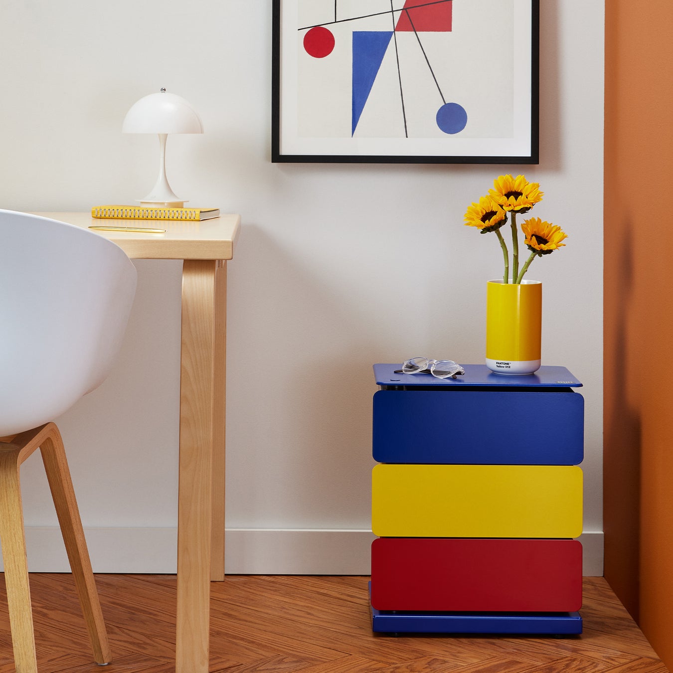 3-ドロワ ピボット キャビネット ブルー x イエロー x レッド