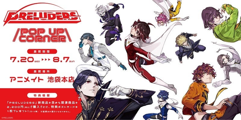 ※アニメイト池袋本店にて、数量限定特典 『PRELUDERS」の新商品を含めて関連商品を2,200円(税込)お買い上げごとに、数量限定の【特典ポストカード】を1枚プレゼント。