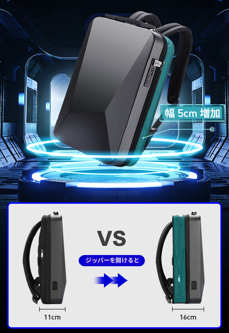 ● 17.3インチPCも収納可能!ジッパーで拡張できる約16Lの大容量バックパック。