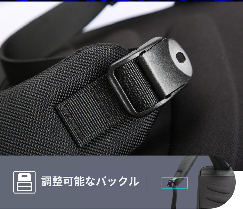 また、ショルダー部分には長さが調節できるバックルも付いているため、身体に合わせて調整いただけます。