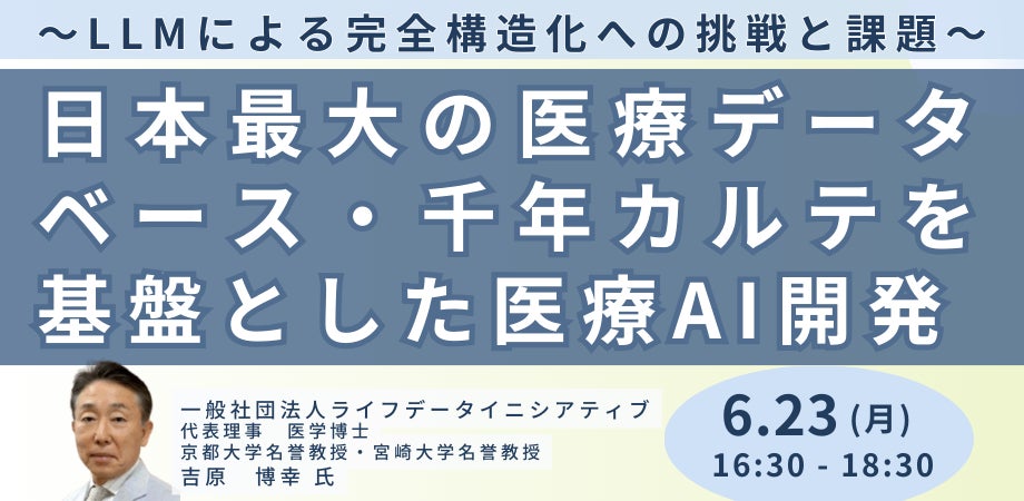 【JPIセミナー】「日本最大の医療データベース・千年カルテを基盤とした医療AI開発」6月23日(月)開催