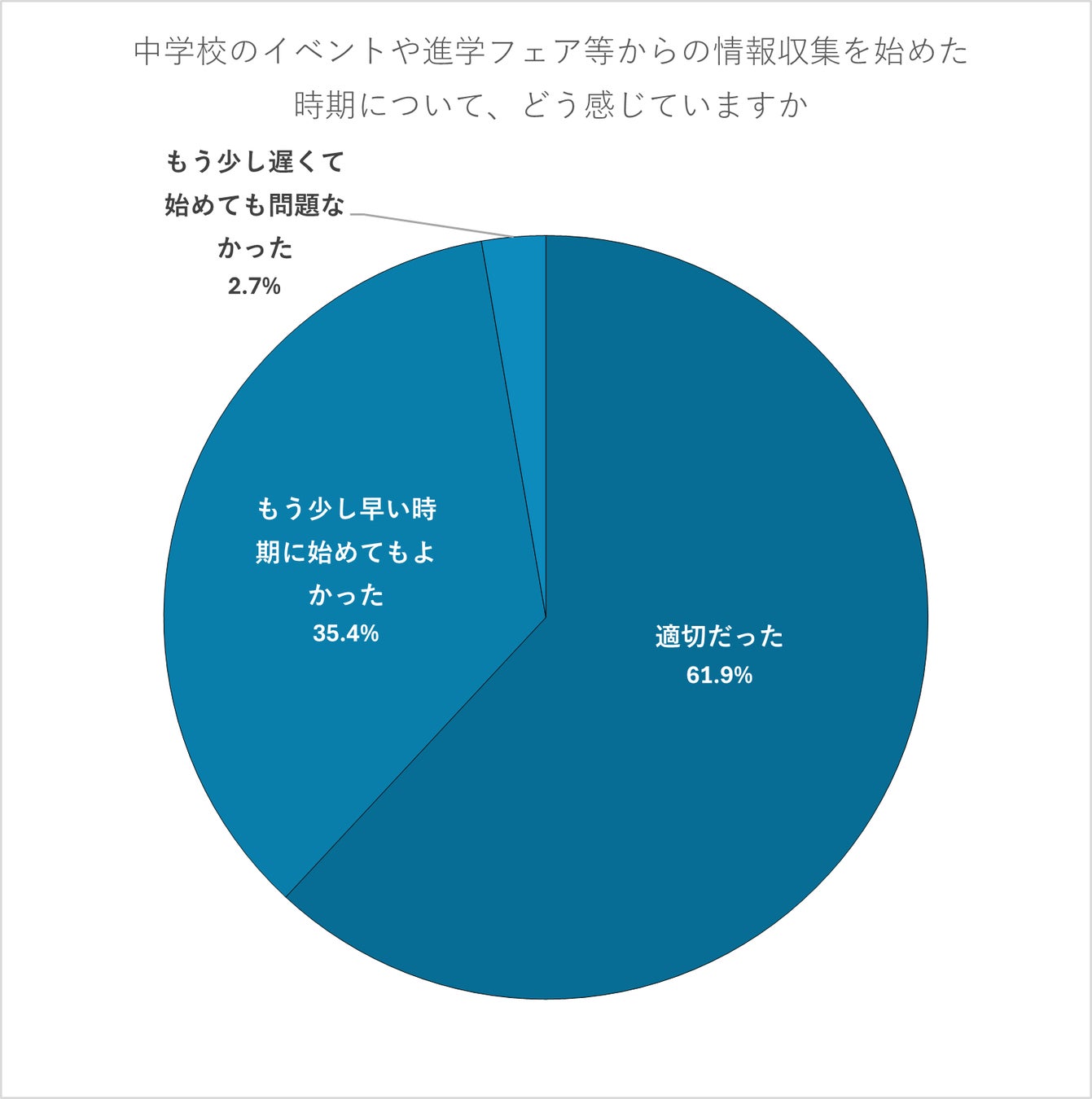 中学校のイベントや進学フェア等からの情報収集を始めた時期について、どう感じていますか。