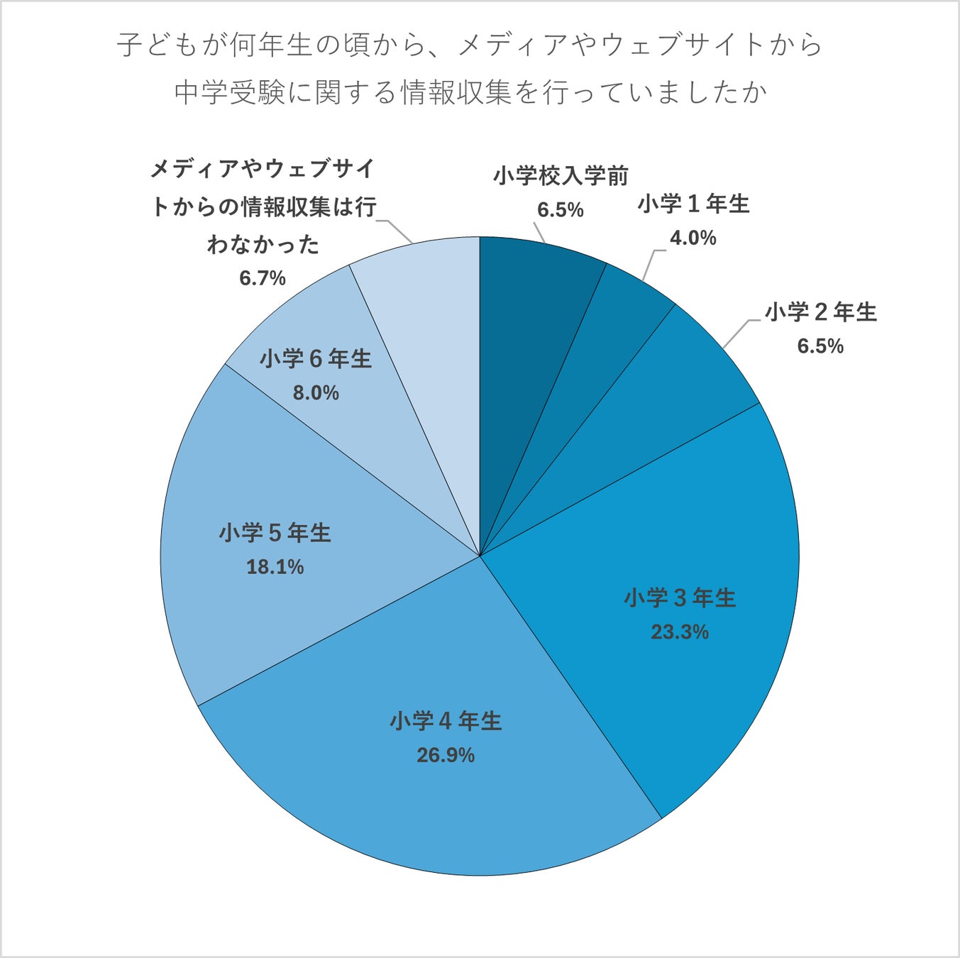 子どもが何年生の頃から、メディアやウェブサイトから中学受験に関する情報収集を行っていましたか。