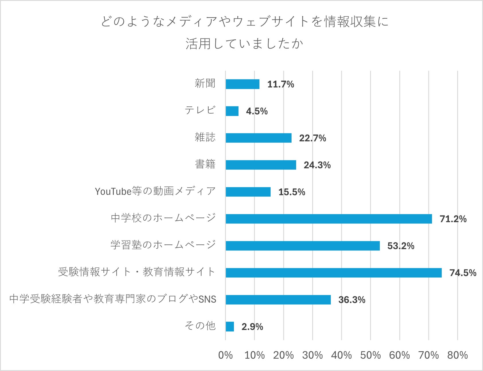 ■中学受験の情報収集に活用した手段は「受験情報サイト・教育情報サイト」「中学校のホームページ」「塾からの情報」