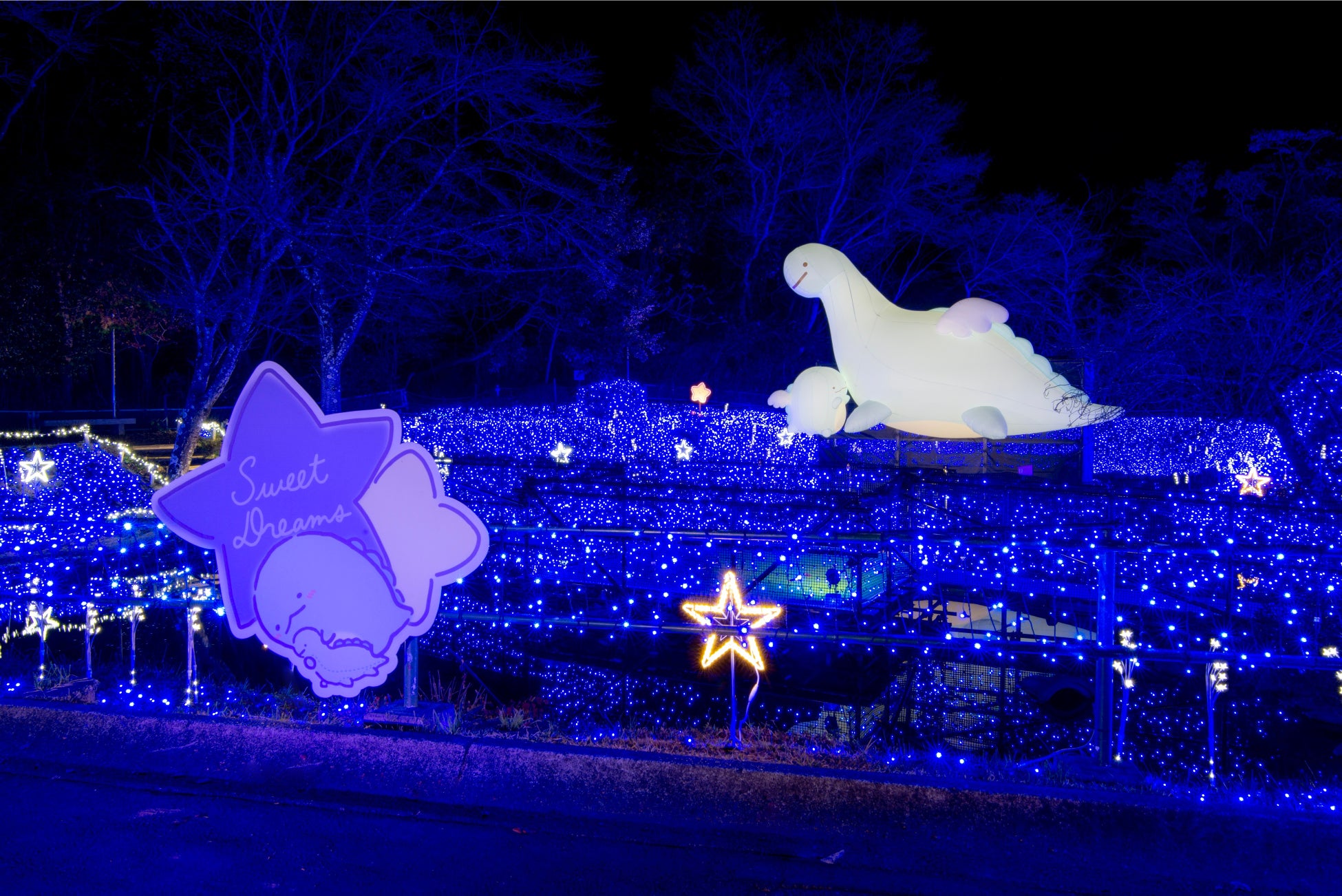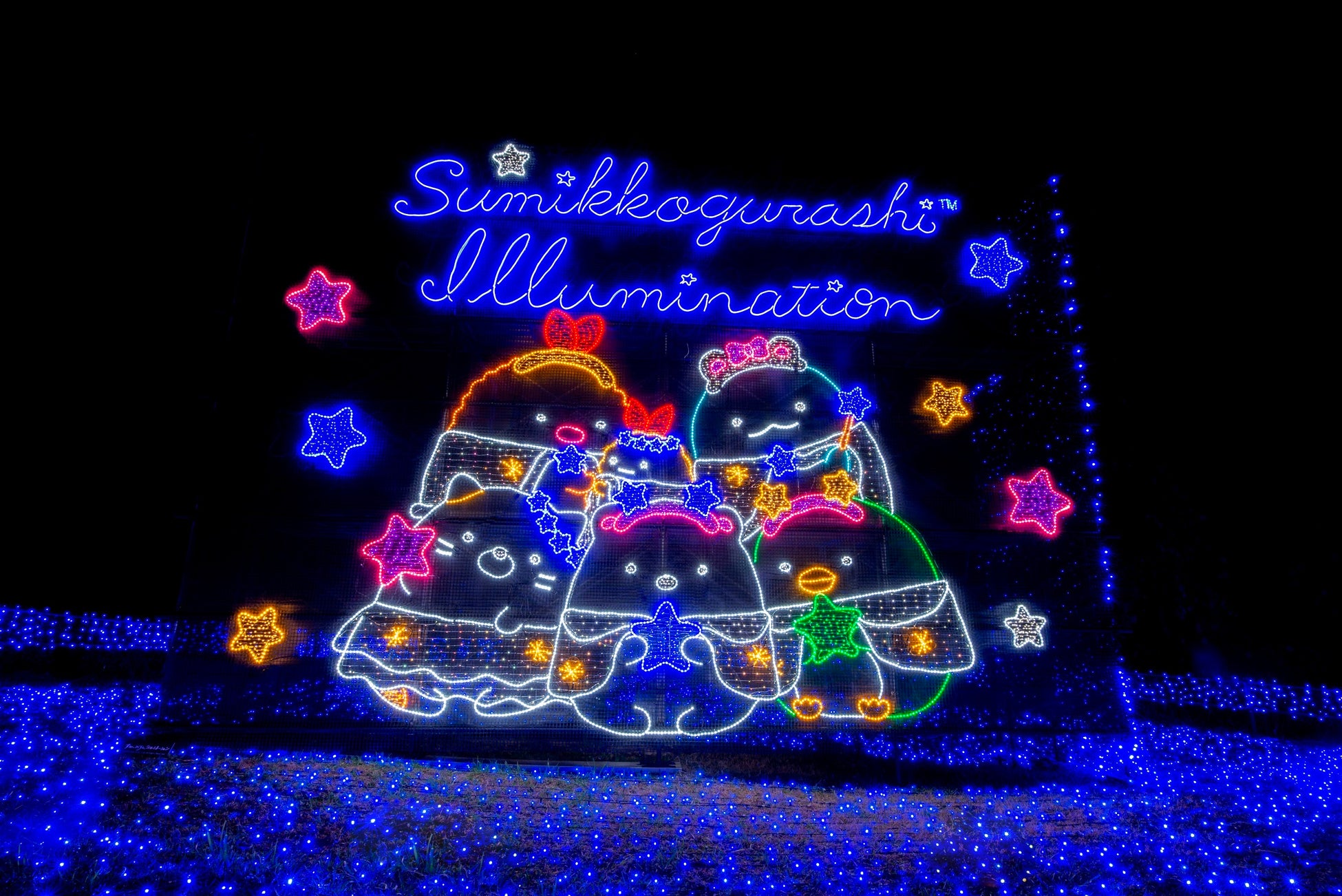 今年は、人気キャラクター「すみっコぐらし」のイルミネーションエリア「すみっコぐらしイルミネーション」が誕生いたしました。全長250mの「虹のリフト」に乗り、降りたった山頂エリアが、すみっコぐらしイルミネーションエリアです。「すみっコぐらし」のストーリー「かわうそとすみっコキャンプ」・「たぴおかパーク」・「星空さんぽ」・「おばけのナイトパーク」・「とかげの夢」をテーマにしたイルミネーションエリアが光り輝きます。