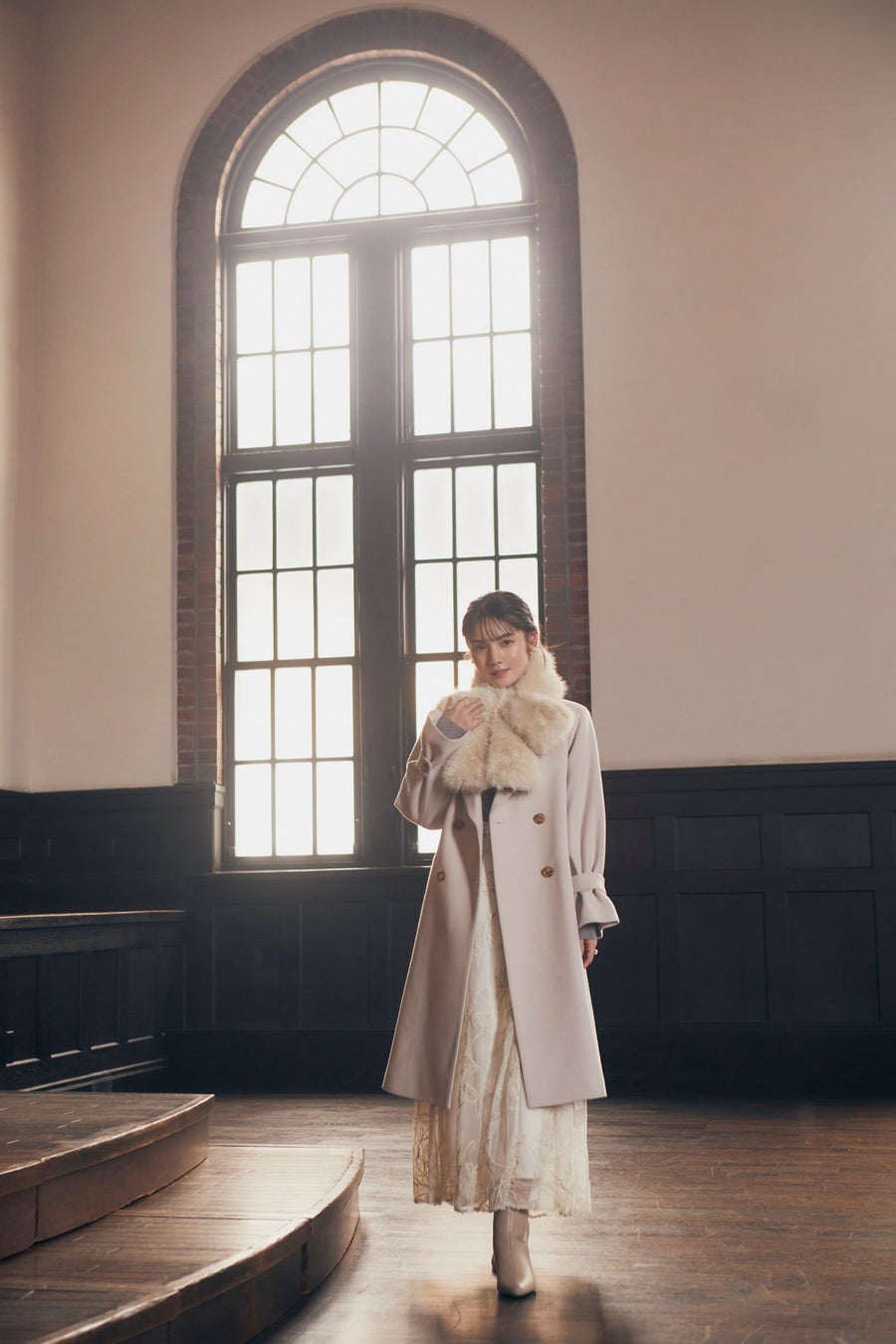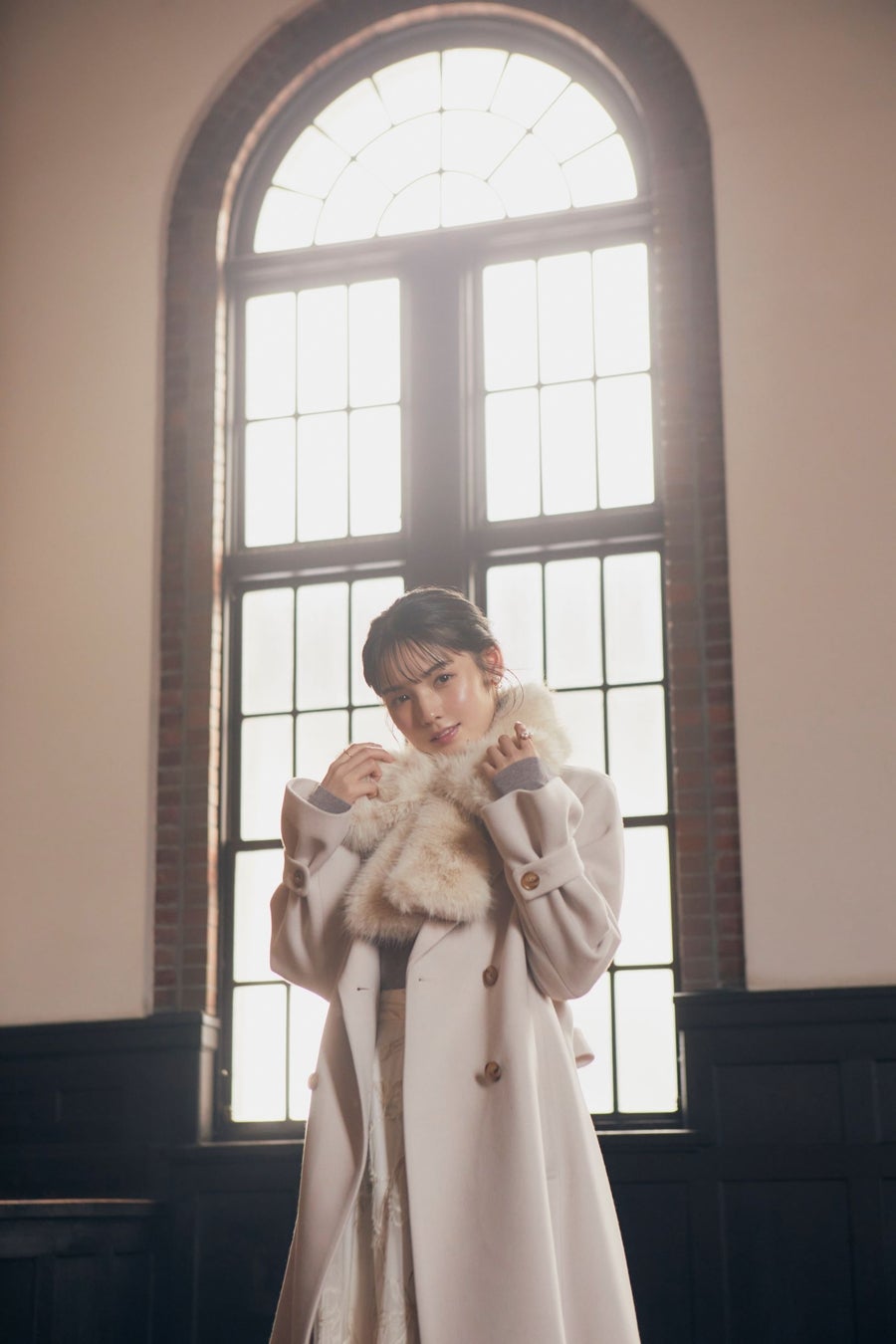 10月公開の新作コレクション特集に次いで、『Fluffy & Sparkling Winter』をテーマに道重さゆみさんに着こなしていただいた今回の特集では、クチュールブローチがおすすめするアウタースタイルを2ルックご提案。