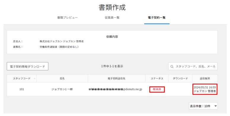 株式会社DONUTS(東京都渋谷区、代表取締役:西村啓成)が提供するクラウド型人事労務システム『ジョブカン労務HR』は「電子契約機能」をアップデートし、送信済みの電子契約書類を、送信先が確認中であれば取り消すことが出来る機能「電子契約送信取り消し機能」を新たに実装いたしました。