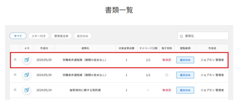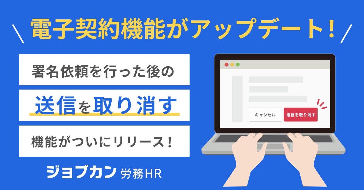 『ジョブカン労務HR』、「電子契約機能」をアップデート「電子契約送信取り消し機能」を追加