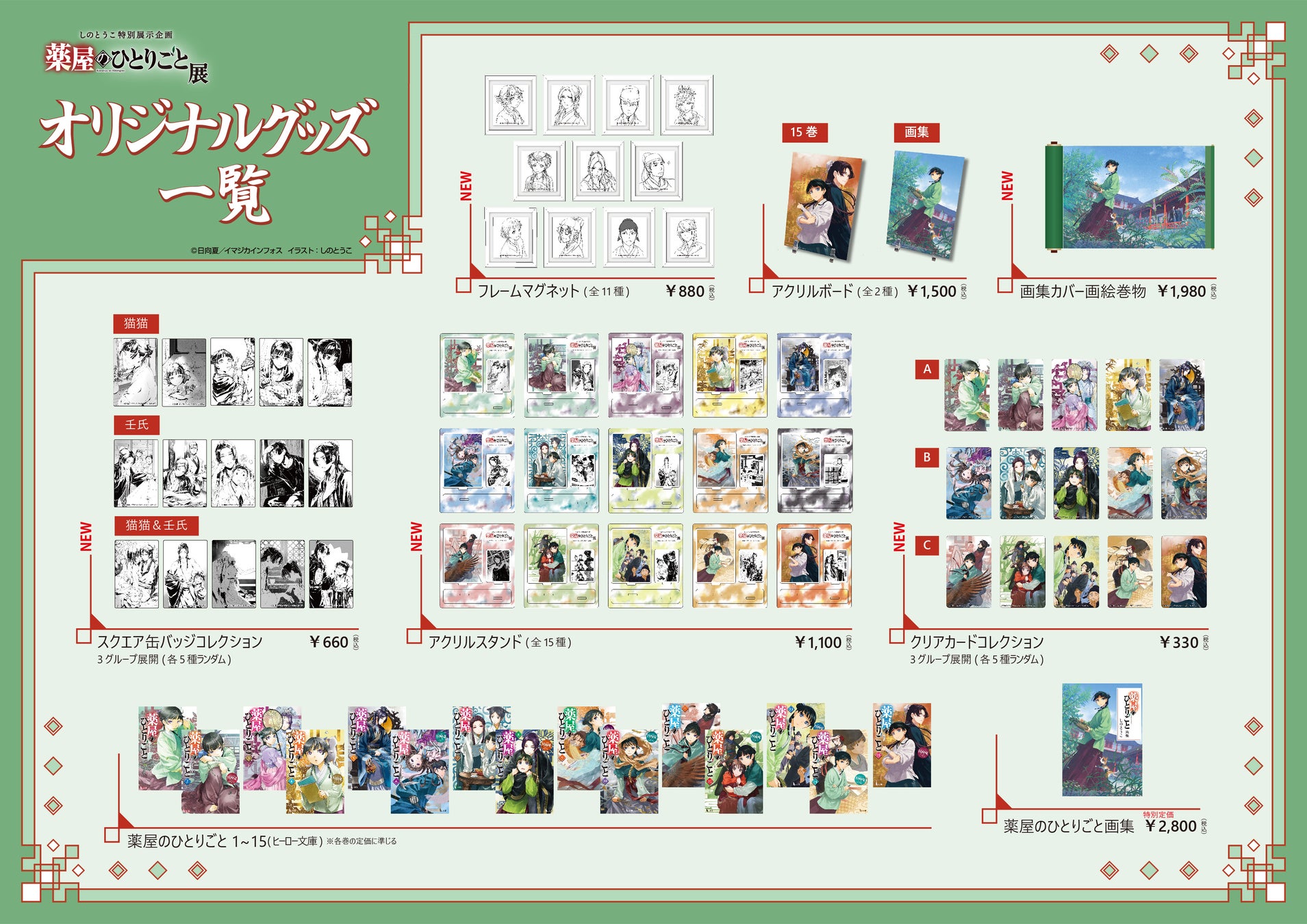 しのとうこ氏が描いた原作小説1~15巻のカバー画、口絵の額装高精細デジタルカラーの展示に加え、物語の名シーンを切り取った挿絵全点をはじめとする各種パネルの展示、オリジナルグッズの再販、新規グッズの販売も。