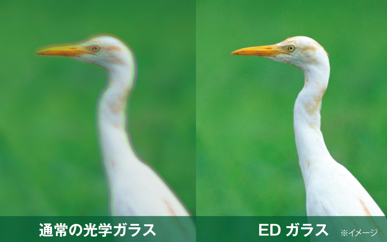 対物レンズ群にはEDレンズ(特殊低分散)を使用し、軸上色収差を極限までに補正。接眼レンズも、EDレンズを使用した対物レンズ群に見合った接眼性能を求めグレードアップ設計を施し、倍率色収差、像面湾曲補正の強化をおこないました。