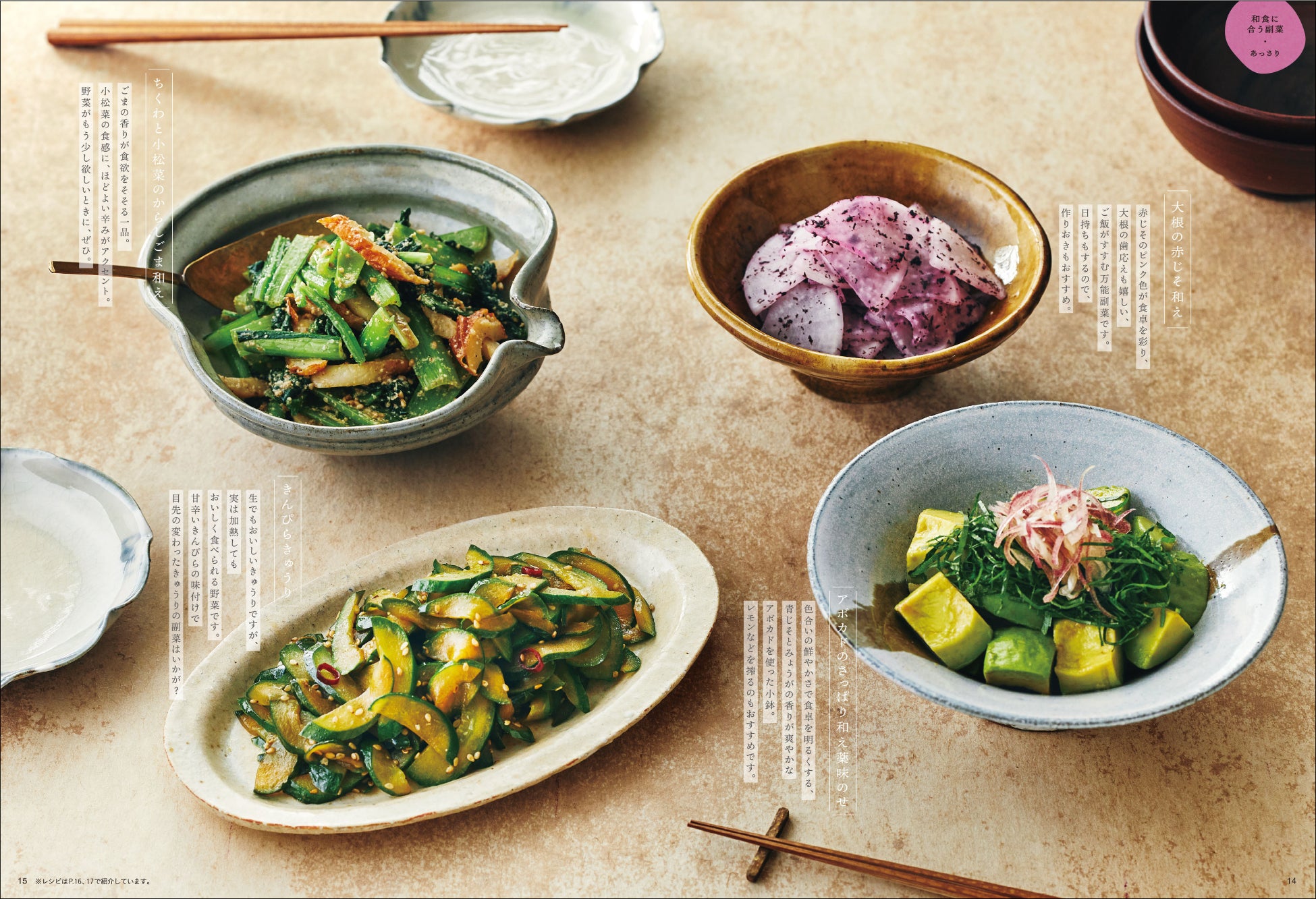 和・洋・中・エスニックの主菜に合う副菜、76品を掲載しています。