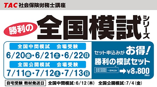 【TAC社労士】締切迫る!勝利の全国模試シリーズ 申込受付中!