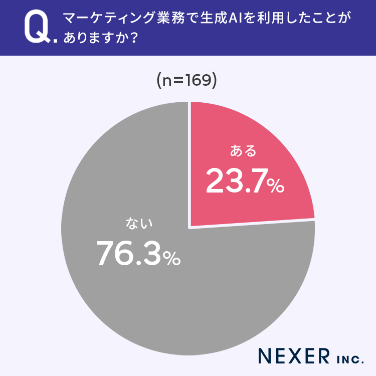 そこで今回は、事前調査で「マーケティング業務の業務経験がある」と回答した全国の男女169名を対象に、「マーケティング業務と生成AI」についてのアンケートをおこないました。