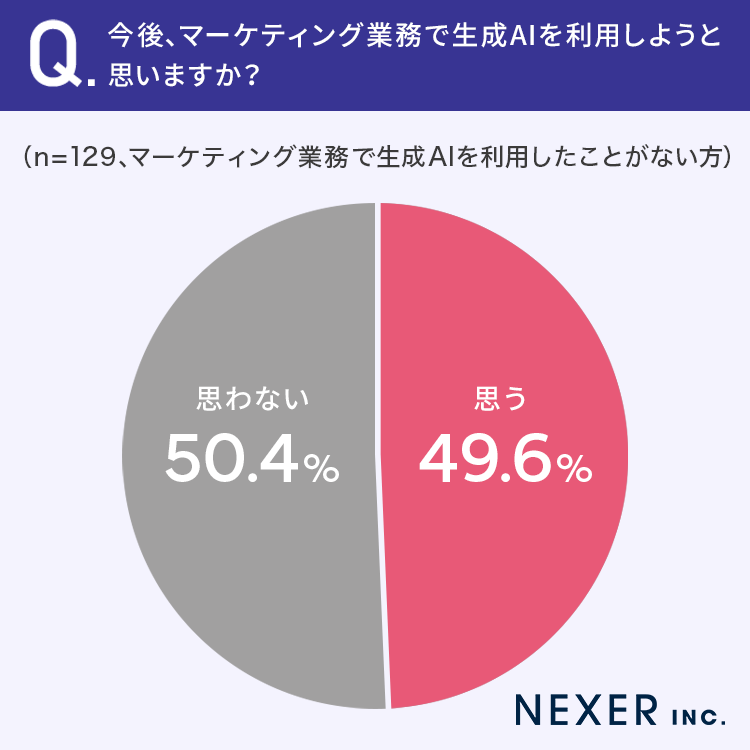 ■49.6%が今後、マーケティング業務で生成AIを利用しようと「思う」